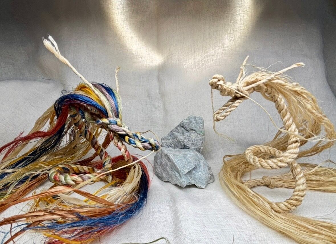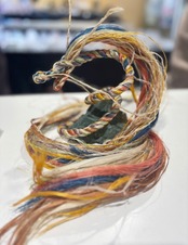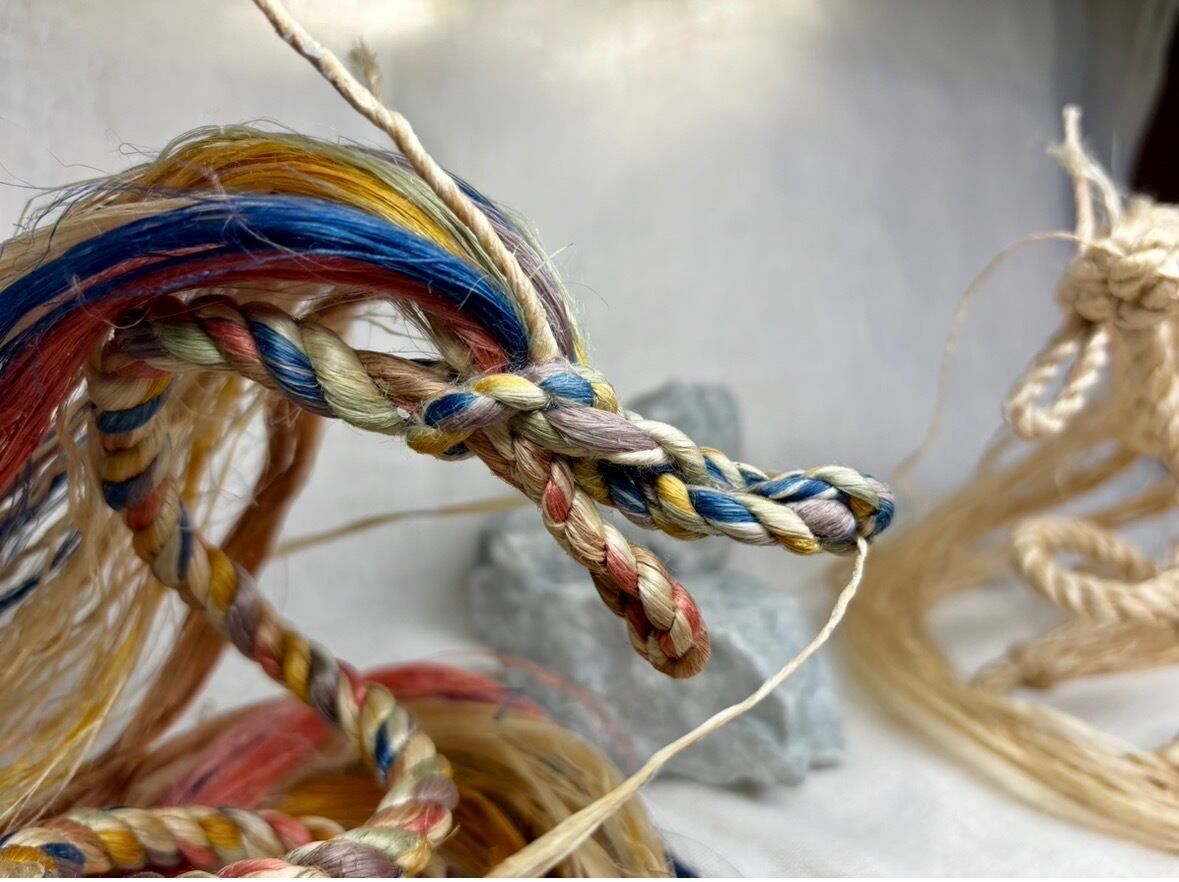 草木染め精麻6本(6色)と聖麻3本(1色)の計9本で創ります。長さは100cm前後。色鮮やかな草木染めのエネルギーは、あなたの情熱の火を灯します。内側から湧き出る「これをやってみたい!」という魂の声をキャッチし、それを現実の行動へと変えていく、クリエイティブな力を引き出してくれます。