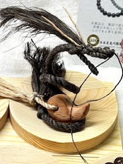 2022 寅年に諏訪で伐採された『御柱御用材』を加工してつくられた「勾玉」に、聖麻を通し、諏訪黒曜石のビーズをつけ、ミニ龍神注連縄(ベンガラ染精麻)を台座としました。これはまさに【諏訪龍神】です。